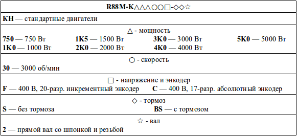 Структура условного обозначения сервомоторов